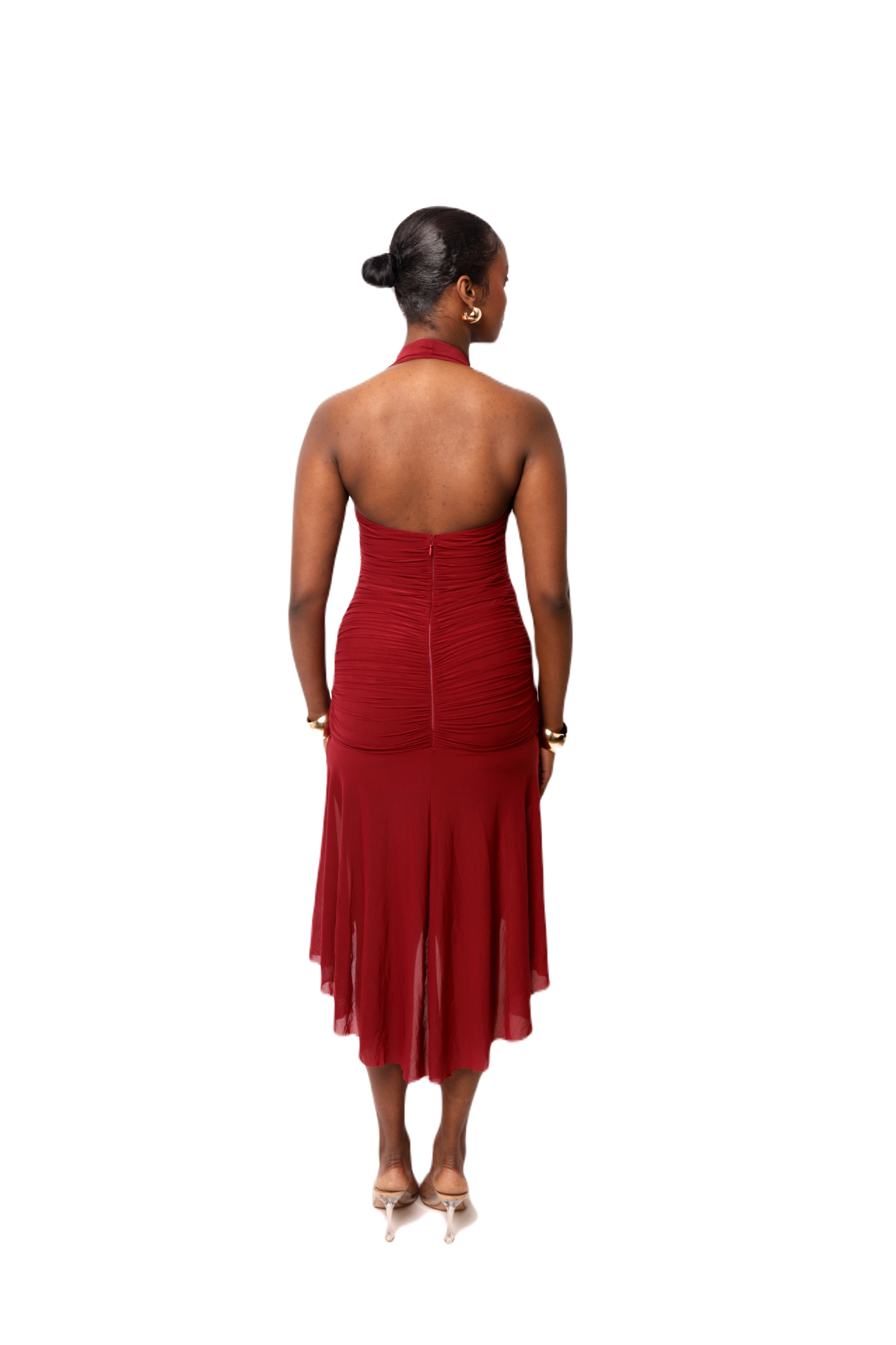 Turn heads in our Seraphina Halter Midi Dress, designed for elegance and allure. Featuring a subtly plunge neckline, curve-enhancing ruching and a flowy-high low hem, this dress is perfect for any upscale occasion. Crafted from premium stretch fabric, it offers both comfort and sophistication. Perfect for a romantic getaway, a destination wedding guest look, or if you are simply going for dinner with the girls. Pair with strappy heels and statement jewellery for an effortlessly chic look.